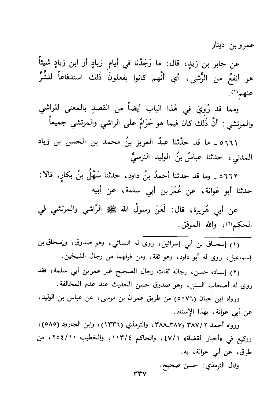 5662 - وَمَا قَدْ حَدَّثَنَا أَحْمَدُ بْنُ دَاوُدَ، حَدَّثَنَا سَهْلُ بْنُ بَكَّارٍ قَالَا: حَدَّثَنَا أَبُو عَوَانَةَ، عَنْ عُمَرَ بْنِ أَبِي سَلَمَةَ، عَنْ أَبِيهِ، عَنْ أَبِي هُرَيْرَةَ قَالَ: " لَعَنَ رَسُولُ اللهِ صَلَّى اللَّهُ عَلَيْهِ وَسَلَّمَ الرَّاشِيَ وَالْمُرْتَشِيَ فِي الْحُكْمِ " وَاللهُ الْمُوَفِّقُ
