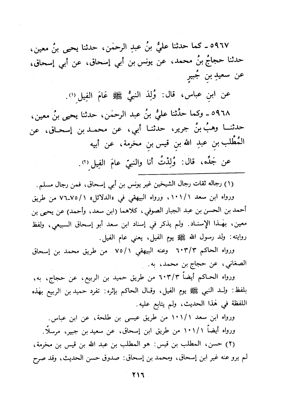 5967 - كَمَا حَدَّثَنَا عَلِيُّ بْنُ عَبْدِ الرَّحْمَنِ، حَدَّثَنَا يَحْيَى بْنُ مَعِينٍ، حَدَّثَنَا حَجَّاجُ بْنُ مُحَمَّدٍ، عَنْ يُونُسَ بْنِ أَبِي إِسْحَاقَ، عَنْ أَبِي إِسْحَاقَ، عَنْ سَعِيدِ بْنِ جُبَيْرٍ، عَنِ ابْنِ عَبَّاسٍ، قَالَ: " وُلِدَ النَّبِيُّ صَلَّى اللَّهُ عَلَيْهِ وَسَلَّمَ عَامَ الْفِيلِ "