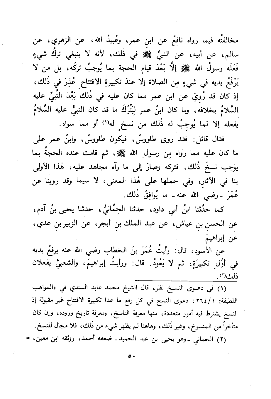 كَمَا حَدَّثَنَا ابْنُ أَبِي دَاوُدَ، حَدَّثَنَا الْحِمَّانِيُّ، حَدَّثَنَا يَحْيَى بْنُ آدَمَ، عَنِ الْحَسَنِ بْنِ عَيَّاشٍ، عَنْ عَبْدِ الْمَلِكِ بْنِ أَبْجَرَ , عَنِ الزُّبَيْرِ بْنِ عَدِيٍّ، عَنْ إِبْرَاهِيمَ، عَنِ الْأَسْوَدِ قَالَ: " رَأَيْتُ عُمَرَ بْنَ الْخَطَّابِ رَضِيَ اللهُ عَنْهُ يَرْفَعُ يَدَيْهِ فِي أَوَّلِ تَكْبِيرَةٍ، ثُمَّ لَا يَعُودُ ". قَالَ: وَرَأَيْتُ إِبْرَاهِيمَ، وَالشَّعْبِيَّ يَفْعَلَانِ ذَلِكَ