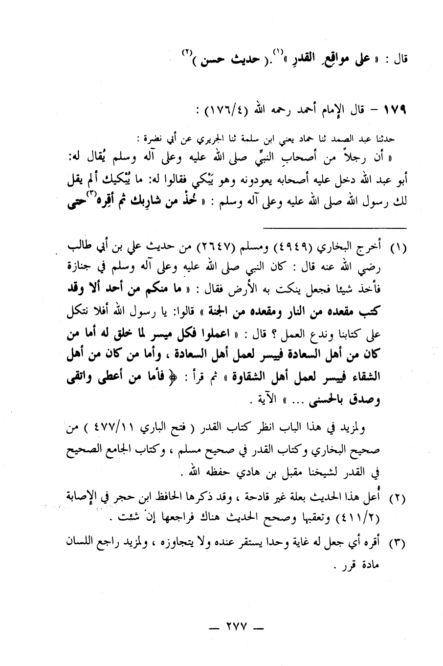 قَالَ: ((عَلَى مَوَاقِعِ الْقَدَرِ)) .