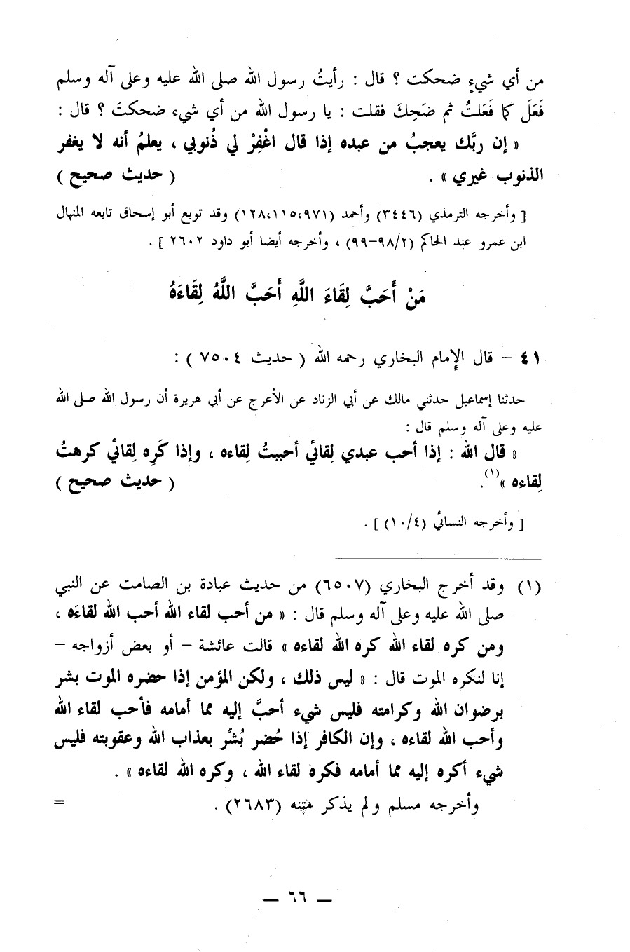 مَنْ أحَبَّ لقَاءَ الله أحبَّ الله لِقَاءَهُ