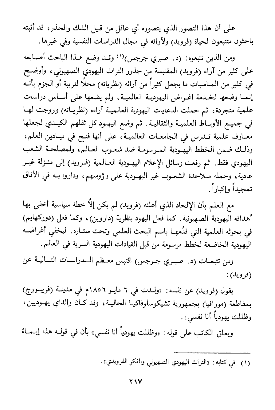 (¬1) في كتابه: "التراث اليهودي الصهيوني والفكر الفرويدي".