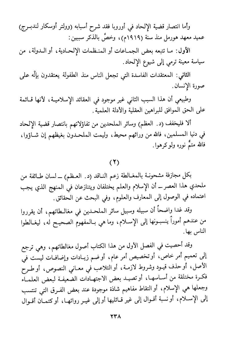 ألا فليخفف (د. العظم) وسائر الملحدين من تفاؤلاتهم بانتصار قضية الإلحاد في دنيا المسلمين، فالله من ورائهم محيط، وليمت الملحدون بغيظهم إن شاؤوا، فالله متمٌّ ولو كرهوا.