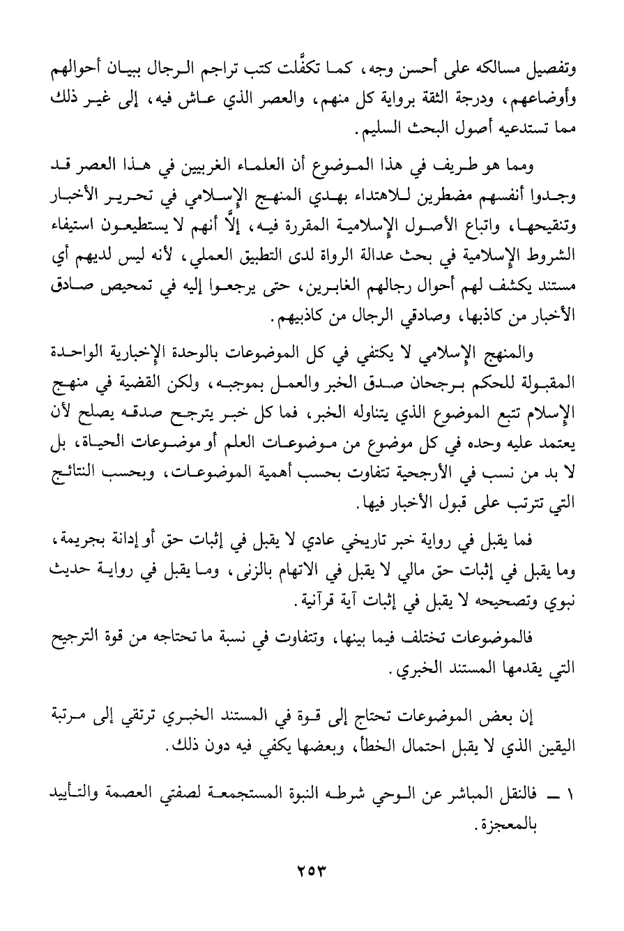 إن بعض الموضوعات تحتاج إلى قوة في المستند الخبري ترتقي إلى مرتبة اليقين الذي لا يقبل احتمال الخطأ، وبعضها يكفي فيه دون ذلك.