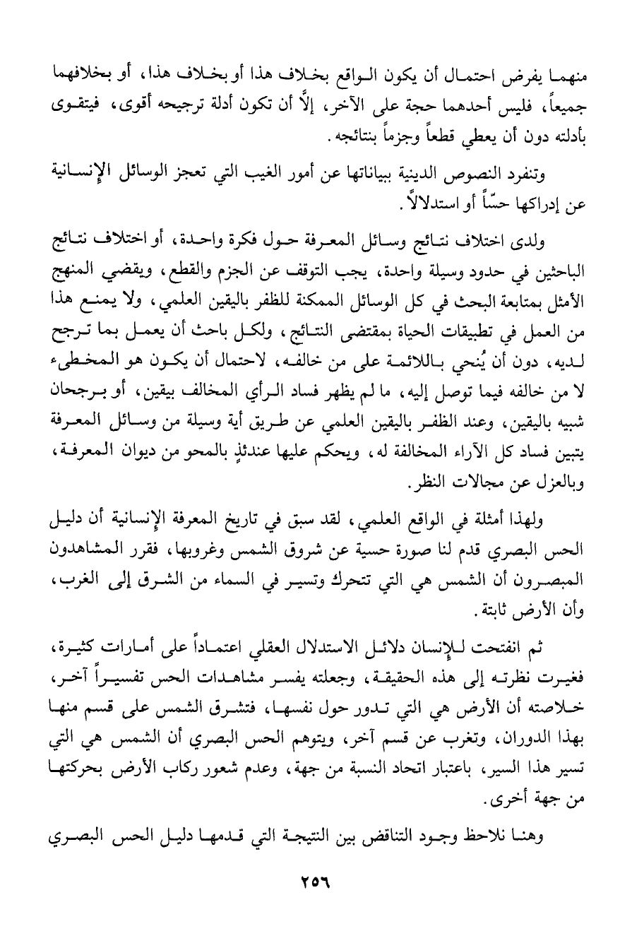 ثم انفتحت للإنسان دلائل الاستدلال العقلي اعتماداً على أمارات كثيرة، فغيرت نظرته إلى هذه الحقيقة، وجعلته يفسر مشاهدات الحس تفسيراً آخر، خلاصته أن الأرض هي التي تدور حول نفسها، فتشرق الشمس على قسم منها بهذا الدوران، وتغرب عن قسم آخر، ويتوهم الحس البصري أن الشمس هي التي تسير هذا السير، باعتبار اتحاد النسبة من جهة، وعدم شعور ركاب الأرض بحركتها من جهة أخرى.