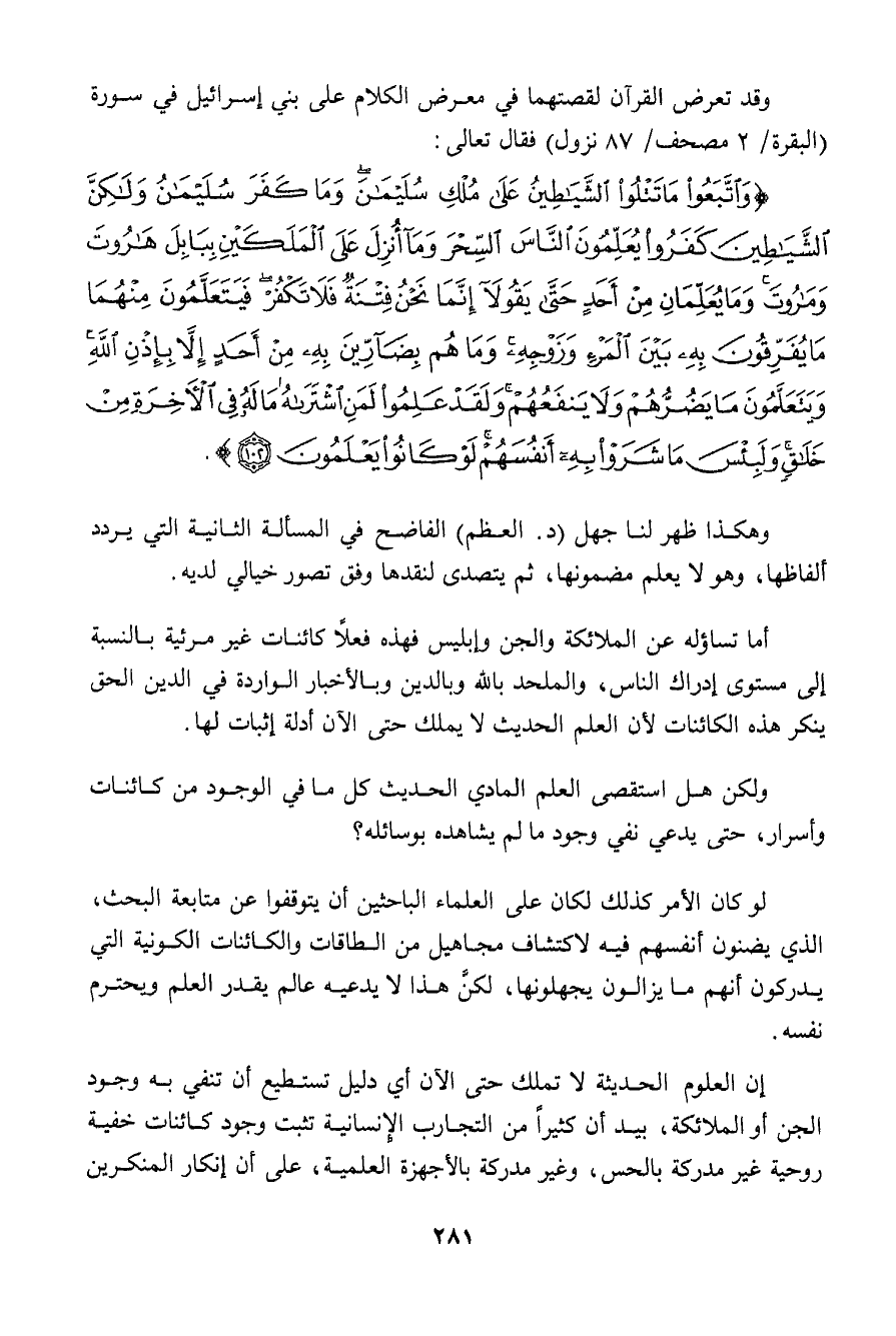 ولكن هل استقصى العلم المادي الحديث كل ما في الوجود من كائنات وأسرار، حتى يدعي نفي وجود ما لم يشاهده بوسائله؟