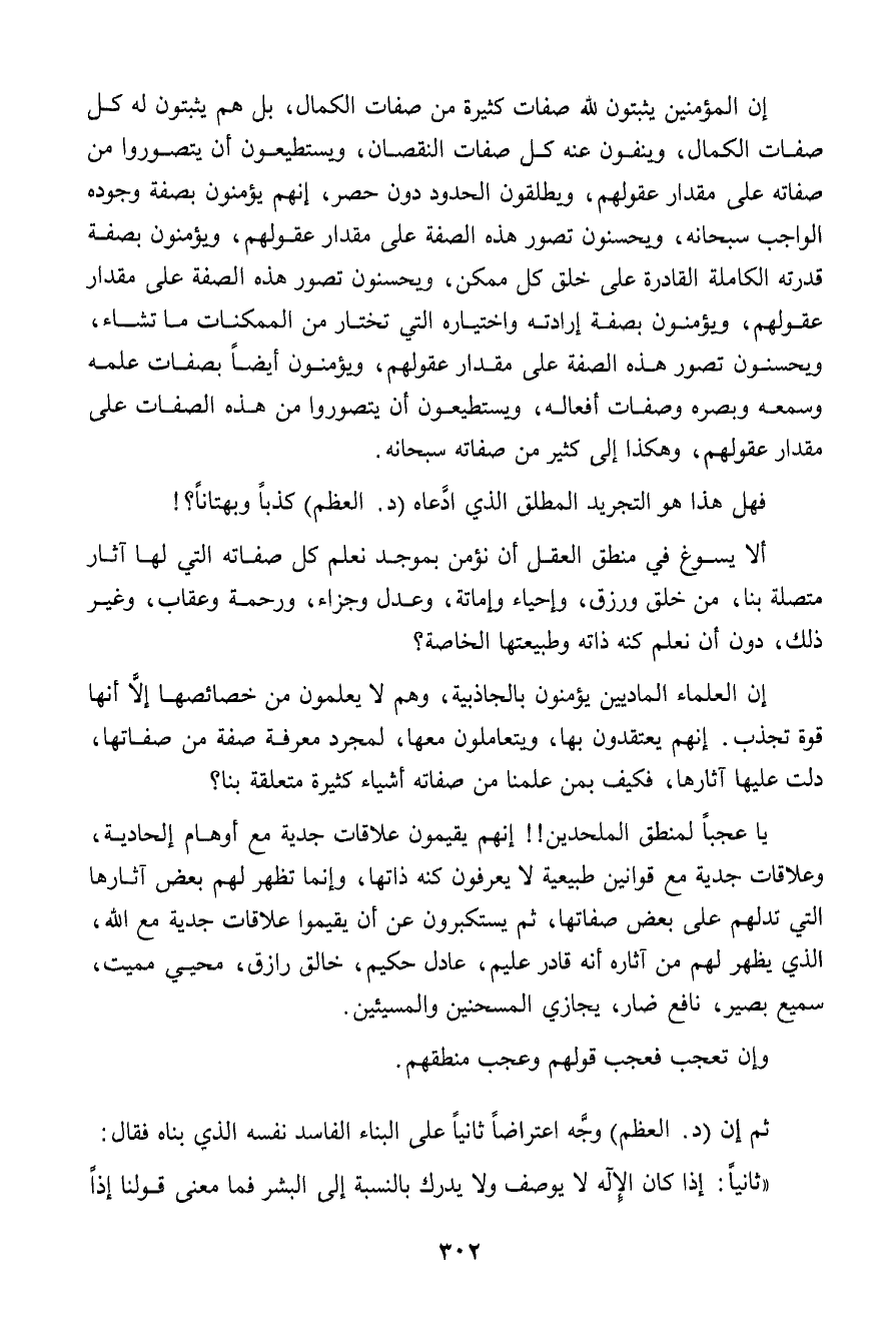 ألا يسوغ في منطق العقل أن نؤمن بموجد نعلم كل صفاته التي لها آثار متصلة بنا، من خلق ورزق، وإحياء وإماتة، وعدل وجزاء، ورحمة وعقاب، وغير ذلك دون أن نعلم كنه ذاته وطبيعتها الخاصة؟
