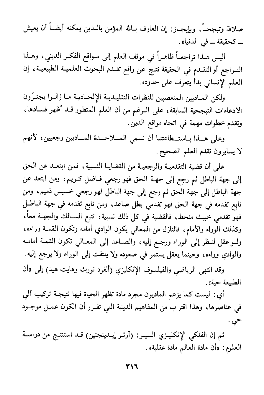 وعلى هذا باستطاعتنا أن نسمي الملاحدة الماديين رجعيين، لأنهم لا يسايرون تقدم العلم الصحيح.