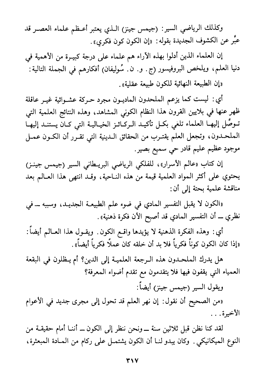 ويقول السير (جيمس جينز) أيضاً: