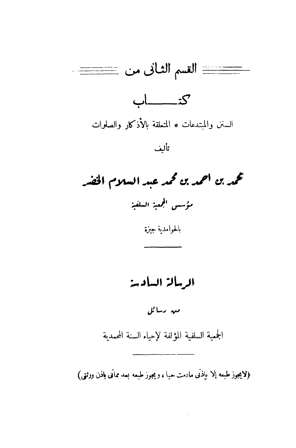 كتاب السنن والمبتدعات المتعلقة بالأذكار والصلوات