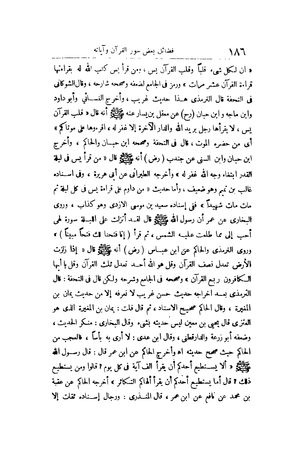روى الْجَمَاعَة إِلَّا البُخَارِيّ " أَنه [صلى الله عَلَيْهِ وَسلم] سُئِلَ أَي الصَّلَاة أفضل بعد الْمَكْتُوبَة؟ قَالَ الصَّلَاة فِي جَوف اللَّيْل، قَالَ: فَأَي الصّيام أفضل بعد رَمَضَان؟ قَالَ: شهر الله الْحَرَام " وروى التِّرْمِذِيّ وَالنَّسَائِيّ وَالْحَاكِم أَنه [صلى الله عَلَيْهِ وَسلم] قَالَ: " أقرب مَا يكون الرب من العَبْد فِي جَوف اللَّيْل الآخر، فَإِن اسْتَطَعْت أَن تكون مِمَّن يذكر فِي تِلْكَ السَّاعَة فَكُن " وَصَححهُ التِّرْمِذِيّ. وَفِي الْجَامِع برمز أَحْمد وَالْبُخَارِيّ وَمُسلم وَأبي دَاوُد وَالنَّسَائِيّ أَنه [صلى الله عَلَيْهِ وَسلم] قَالَ: " أحب الصّيام إِلَى الله صِيَام دَاوُد كَانَ يَصُوم يَوْمًا وَيفْطر يَوْمًا، وَأحب الصَّلَاة إِلَى الله صَلَاة دَاوُد، كَانَ ينَام نصف اللَّيْل وَيقوم ثلثه وينام سدسه " وروى الْجَمَاعَة كلهم أَنه [صلى الله عَلَيْهِ وَسلم] قَالَ: " ينزل الله إِلَى السَّمَاء الدُّنْيَا كل لَيْلَة حِين يمْضِي ثلث اللَّيْل الأول، فَيَقُول: أَنا الْملك من ذَا الَّذِي دَعونِي فأستجيب لَهُ؟ من