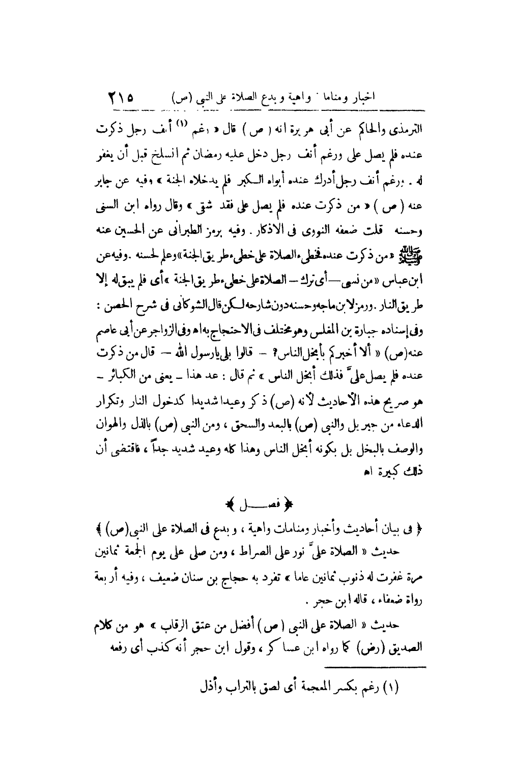 وإنني لأعجب كَيفَ يروج هَذَا على عقول الْعلمَاء وَكَيف يقبلونه؟ وَكَيف يَحْفَظُونَهُ ويقرءونه على النَّاس، وَفِي مصنفاتهم يكتبونه، وَقد سَمِعت هَذَا الحَدِيث من شيخ أزهري يُقَال لَهُ: عَالم، وقرأته على ظهر كتاب لشيخ من الْمُتَأَخِّرين، فيا للأسف على فَسَاد عقول رُؤَسَاء الدّين، ورواج الأباطيل والأضاليل والترهات على من اشتهروا بَين النَّاس بِأَنَّهُم كبار الْمُسلمين، وعَلى عدم معرفتهم بَين الصَّحِيح والمكذوب على الرَّسُول الْأمين، [صلى الله عَلَيْهِ وَسلم] .