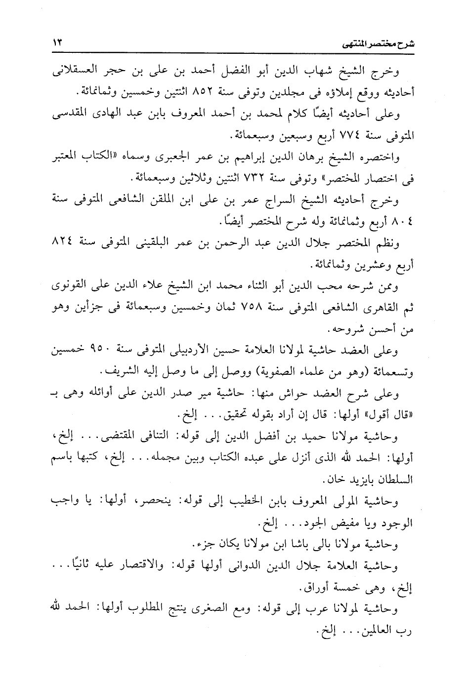 وعلى العضد حاشية لمولانا العلامة حسين الأردبيلى المتوفى سنة ٩٥٠ خمسين وتسعمائة (وهو من علماء الصفوية) ووصل إلى ما وصل إليه الشريف.