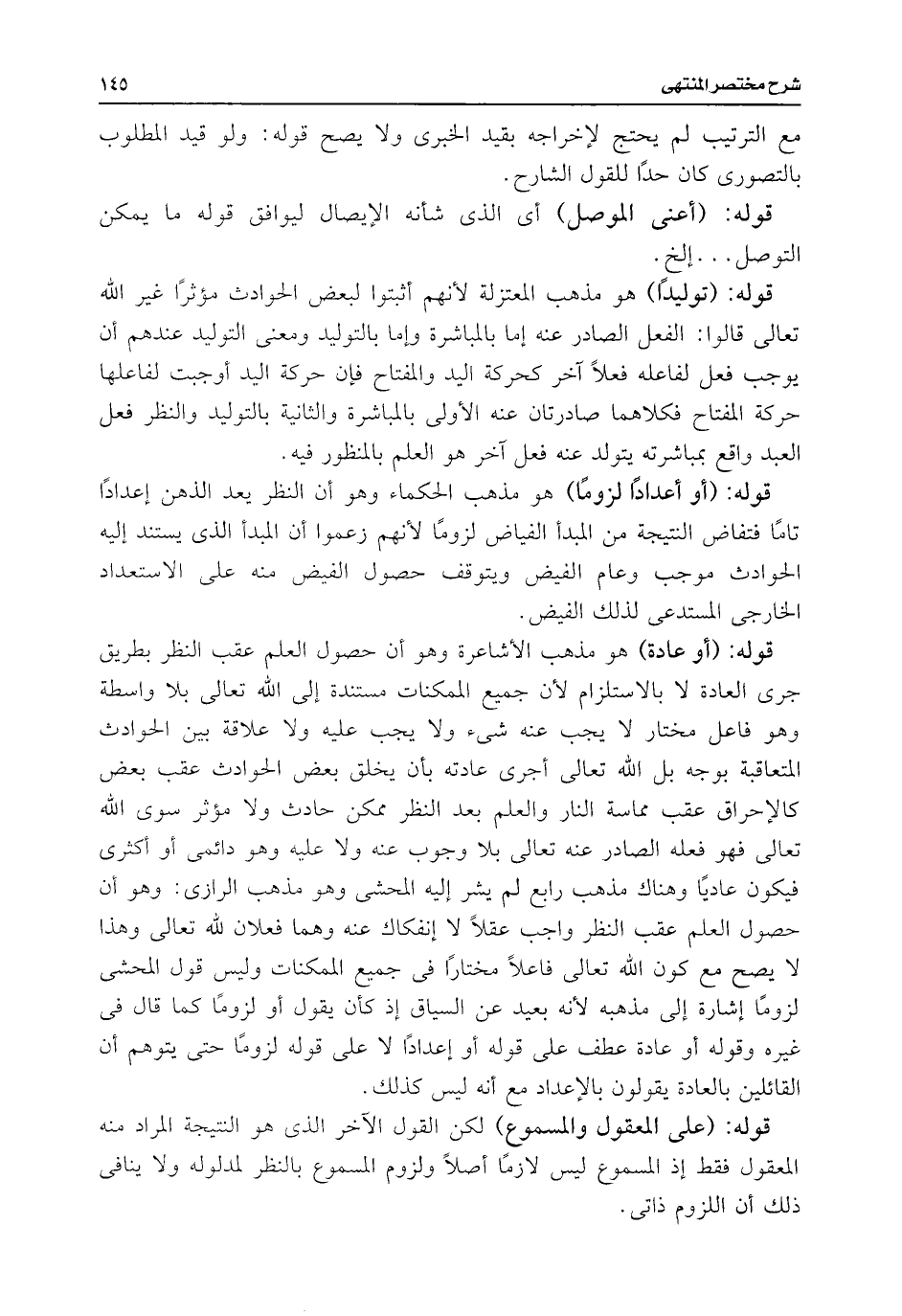 قوله: (توليدًا) هو مذهب المعتزلة لأنهم أثبتوا لبعض الحوادث مؤثرًا غير اللَّه تعالى قالوا: الفعل الصادر عنه إما بالمباشرة وإما بالتوليد ومعنى التوليد عندهم أن يوجب فعل لفاعله فعلًا آخر كحركة اليد والمفتاح فإن حركة اليد أوجبت لفاعلها حركة المفتاح فكلاهما صادرتان عنه الأولى بالمباشرة والثانية بالتوليد والنظر فعل العبد واقع بمباشرته يتولد عنه فعل آخر هو العلم بالمنظور فيه.