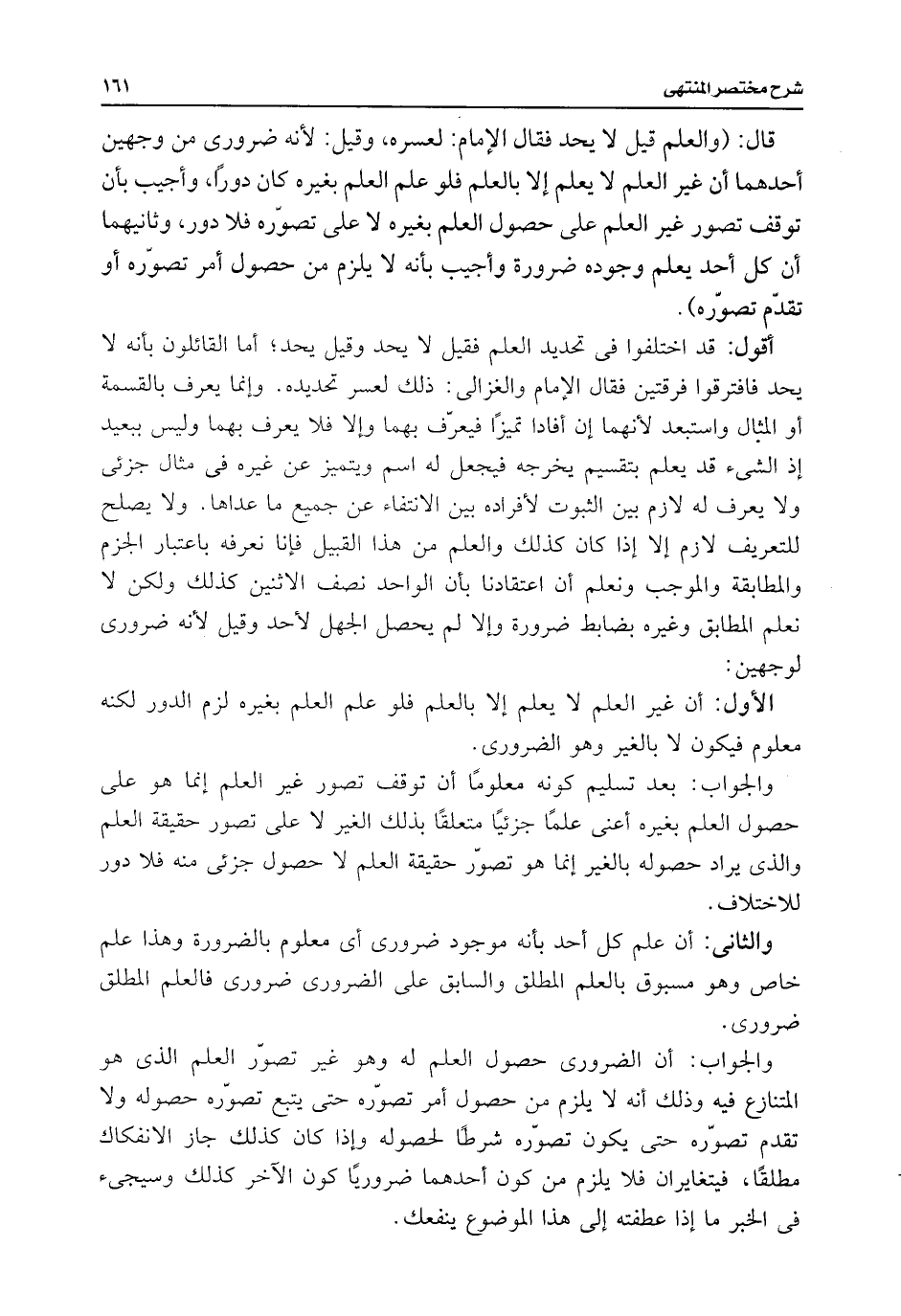والجواب: بعد تسليم كونه معلومًا أن توقف تصور غير العلم إنما هو على حصول العلم بغيره أعنى علمًا جزئيًا متعلقًا بذلك الغير لا على تصور حقيقة العلم والذى يراد حصوله بالغير إنما هو تصوّر حقيقة العلم لا حصول جزئى منه فلا دور للاختلاف.