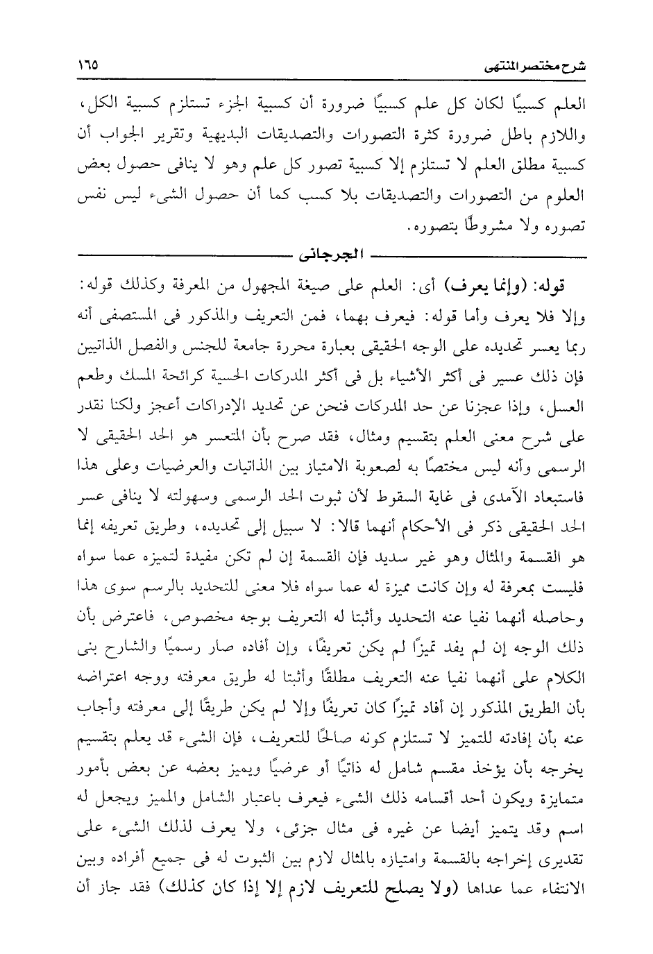 العلم كسبيًا لكان كل علم كسبيًا ضرورة أن كسبية الجزء تستلزم كسبية الكل، واللازم باطل ضرورة كثرة التصورات والتصديقات البديهية وتقرير الجواب أن كسبية مطلق العلم لا تستلزم إلا كسبية تصور كل علم وهو لا ينافى حصول بعض العلوم من التصورات والتصديقات بلا كسب كما أن حصول الشئ ليس نفس تصوره ولا مشروطًا بتصوره.