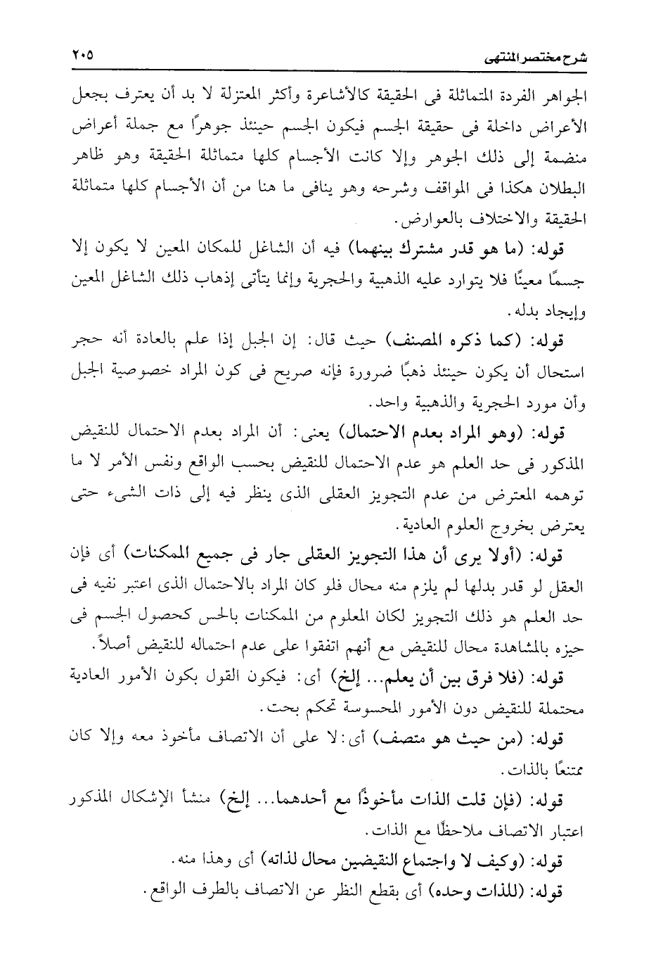 الجواهر الفردة المتماثلة فى الحقيقة كالأشاعرة وأكثر المعتزلة لا بد أن يعترف بجعل الأعراض داخلة فى حقيقة الجسم فيكون الجسم حينئذ جوهرًا مع جملة أعراض منضمة إلى ذلك الجوهر وإلا كانت الأجسام كلها متماثلة الحقيقة وهو ظاهر البطلان هكذا فى المواقف وشرحه وهو ينافى ما هنا من أن الأجسام كلها متماثلة الحقيقة والاختلاف بالعوارض.