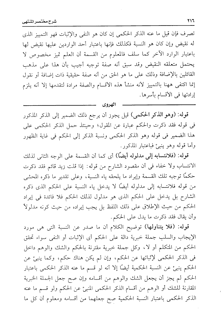 تصرف فإن قيل ما عنه الذكر الحكمى إن كان هو النفى والإثبات فهو التمييز الذى له نقيض وإن كان هو النسبة فكذلك فإنها باعتبار أحد الواردين عليها نقيض لها باعتبار الوارد الآخر كما سلف فالمعلوم من القسمة أن العلم تميز مخصوص لا يحتمل متعلقه النقيض وقد سبق أنه صفة توجبه أجيب بأن هذا على مذهب القائلين بالإضافة وذلك على ما هو الحق من أنه صفة حقيقية ذات إضافة أو نقول إنما اكتفى ههنا بالتمييز لأنه منشأ هذه الأقسام والصفة مرادة لتقدمها إلا أنه يلزم إرادتها فى الأقسام بأسرها.