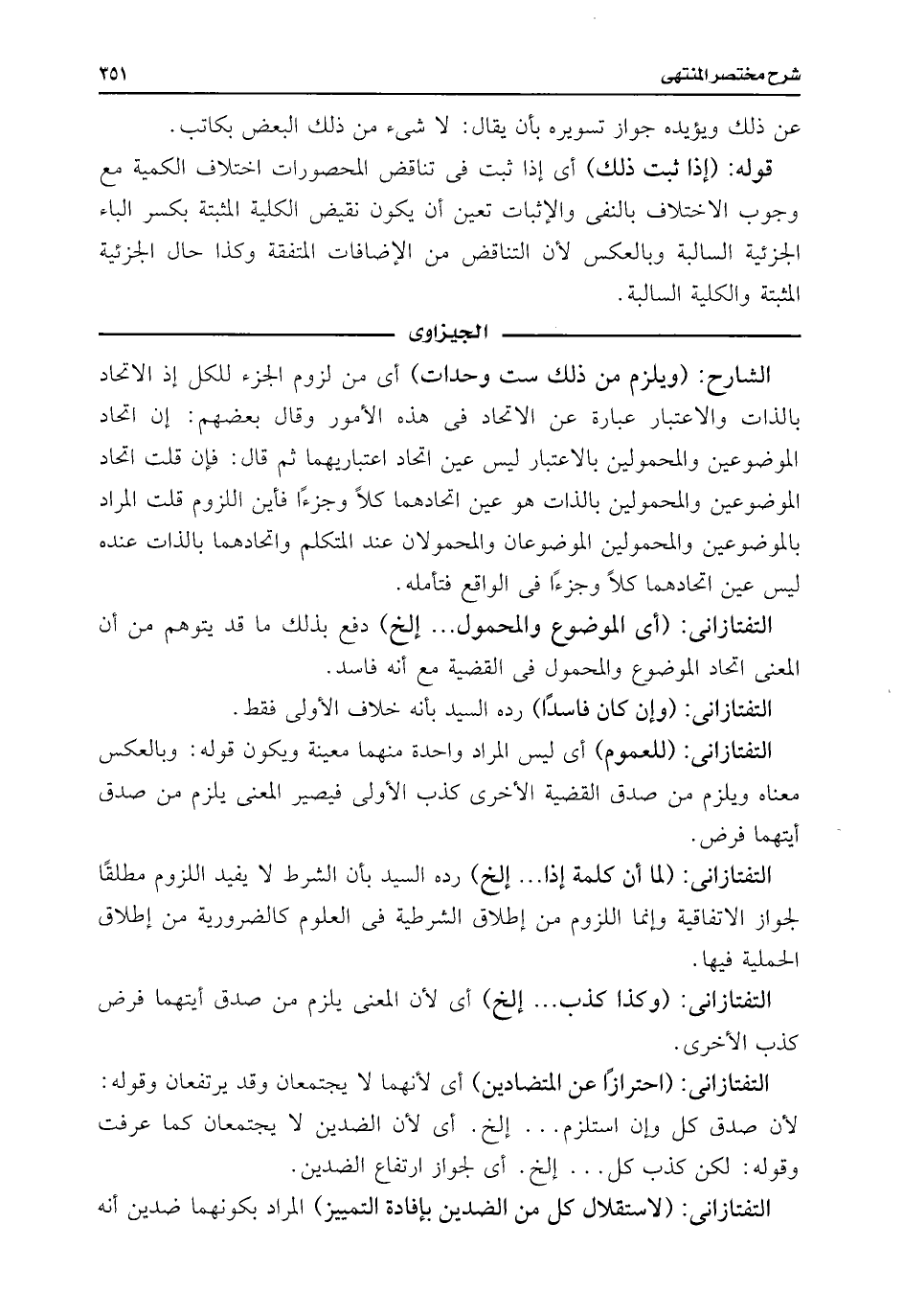 التفتازانى: (لما أن كلمة إذا. . . إلخ) رده السيد بأن الشرط لا يفيد اللزوم مطلقًا لجواز الاتفاقية وإنما اللزوم من إطلاق الشرطية فى العلوم كالضرورية من إطلاق الحملية فيها.