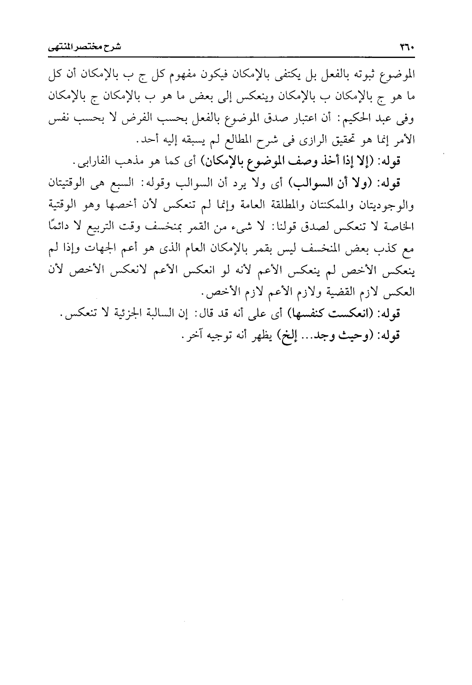 الموضوع ثبوته بالفعل بل يكتفى بالإمكان فيكون مفهوم كل ج ب بالإمكان أن كل ما هو ج بالإمكان ب بالإمكان وينعكس إلى بعض ما هو ب بالإمكان ج بالإمكان وفى عبد الحكيم: أن اعتبار صدق الموضوع بالفعل بحسب الفرض لا بحسب نفس الأمر إنما هو تحقيق الرازى فى شرح المطالع لم يسبقه إليه أحد.