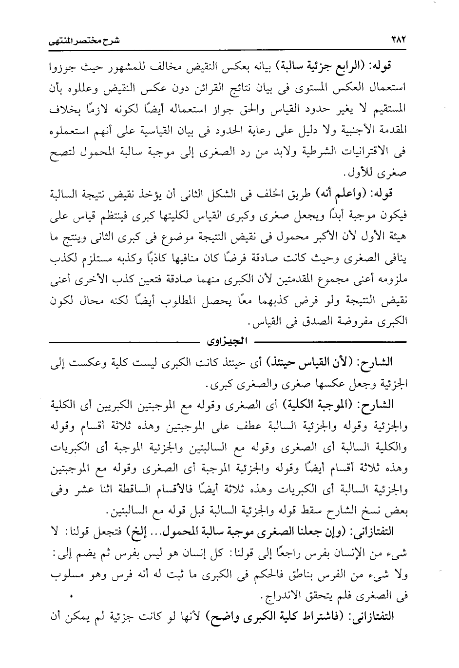 التفتازانى: (فاشتراط كلية الكبرى واضح) لأنها لو كانت جزئية لم يمكن أن