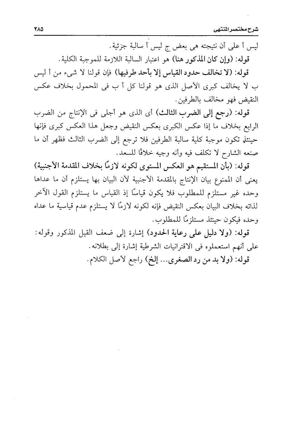 قوله: (ولا دليل على رعاية الحدود) إشارة إلى ضعف القيل المذكور وقوله: على أنهم استعملوه فى الاقترانيات الشرطية إشارة إلى بطلانه.