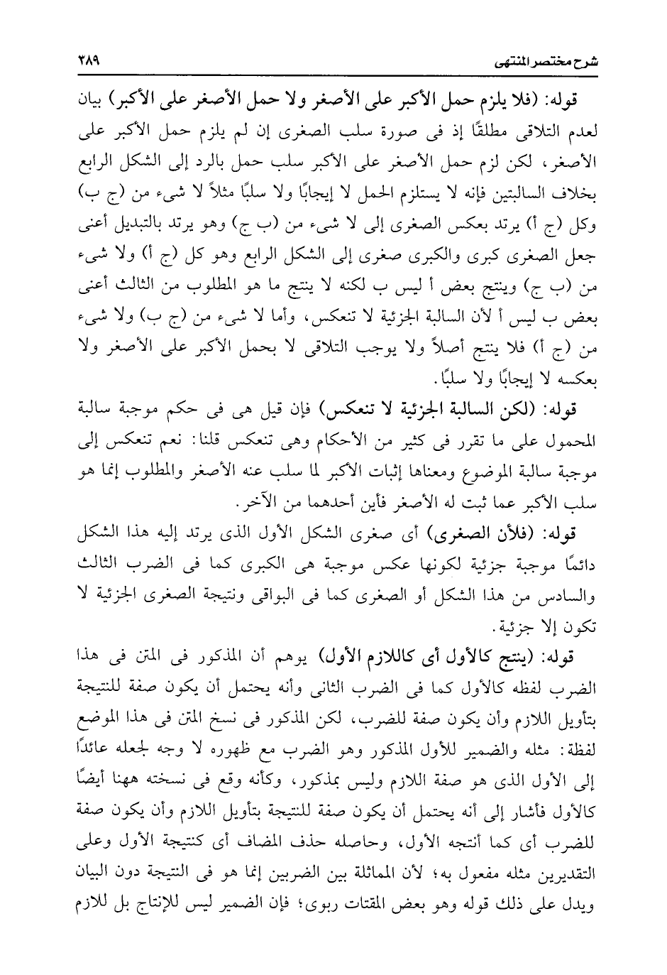 قوله: (لكن السالبة الجزئية لا تنعكس) فإن قيل هى فى حكم موجبة سالبة المحمول على ما تقرر فى كثير من الأحكام وهى تنعكس قلنا: نعم تنعكس إلى موجبة سالبة الموضوع ومعناها إثبات الأكبر لما سلب عنه الأصغر والمطلوب إنما هو سلب الأكبر عما ثبت له الأصغر فأين أحدهما من الآخر.