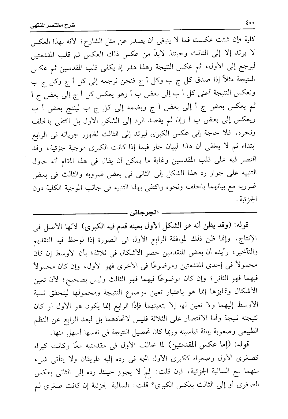 كلية فإن شئت عكست فما لا ينبغى أن يصدر عن مثل الشارح؛ لأنه بهذا العكس لا يرتد إلا إلى الثالث وحينئذ لابدّ من عكس ذلك العكس ثم قلب المقدمتين ليرجع إلى الأول، ثم عكس النتيجة وهذا هدر إذ يكفى قلب المقدمتين ثم عكس النتيجة مثلًا إذا صدق كل ج ب وكل أج فنحن نرجعه إلى كل أج وكل ج ب ونعكس النتيجة أعنى كل أب إلى بعض ب أوهو يعكس كل أج إلى بعض ج أثم يعكس بعض ج أإلى بعض أج ويضمه إلى كل ج ب لينتج بعض أب ويعكس إلى بعض ب أوإن لم يقصد الرد إلى الشكل الأول بل اكتفى بالخلف ونحوه، فلا حاجة إلى عكس الكبرى ليرتد إلى الثالث لظهور جريانه فى الرابع ابتداء ثم لا يخفى أن هذا البيان جار فيما إذا كانت الكبرى موجبة جزئية، وقد اقتصر فيه على قلب المقدمتين وغاية ما يمكن أن يقال فى هذا المقام أنه حاول التنبيه على جواز رد هذا الشكل إلى الثانى فى بعض ضروبه والثالث فى بعض ضروبه مع بيانهما بالخلف ونحوه واكتفى بهذا التنبجه فى جانب الموجبة الكلية دون الجزئية.