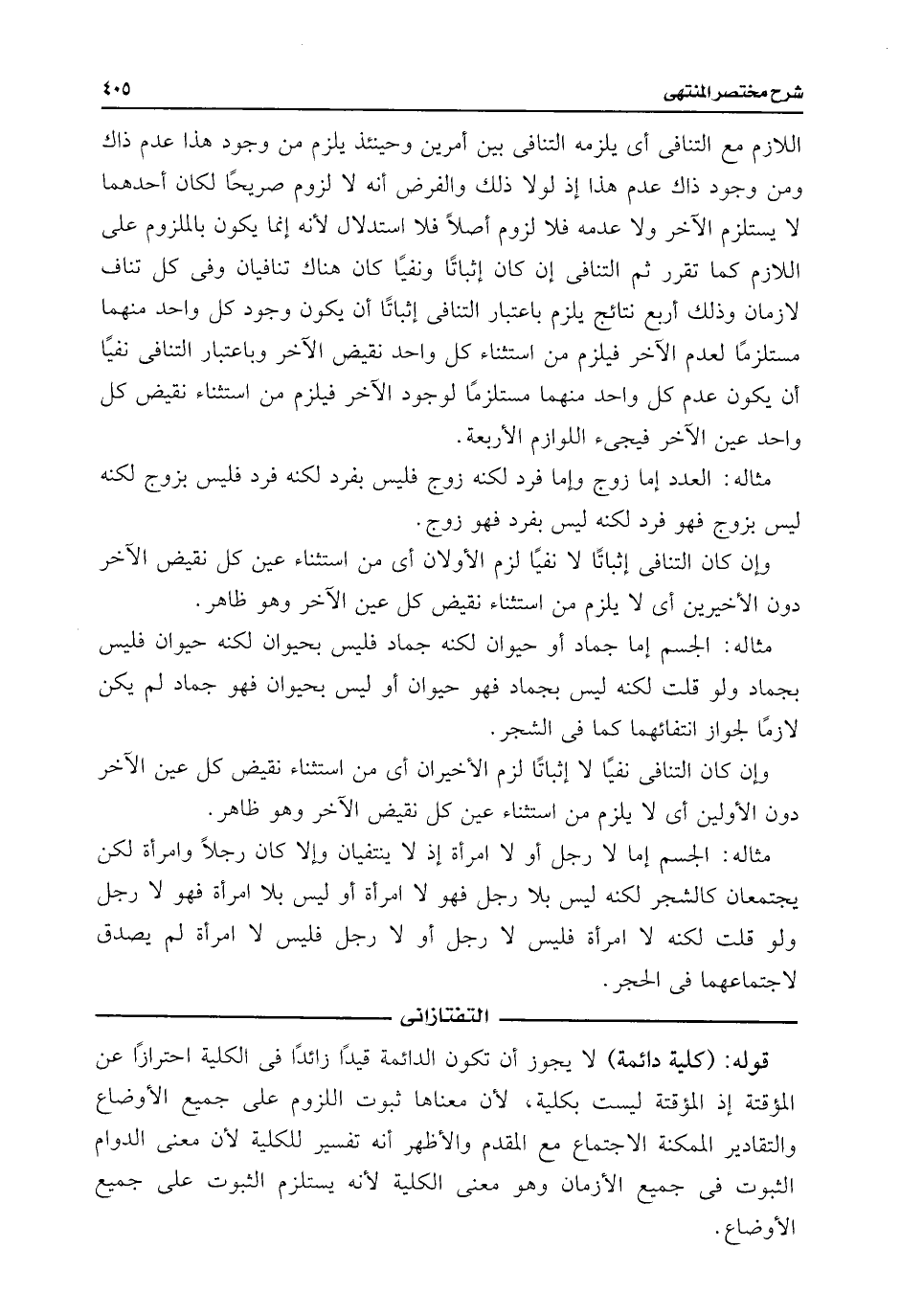 مثاله: الجسم إما جماد أو حيوان لكنه جماد فليس بحيوان لكنه حيوان فليس بجماد ولو قلت لكنه ليس بجماد فهو حيوان أو ليس بحيوان فهو جماد لم يكن لازمًا لجواز انتفائهما كما فى الشجر.