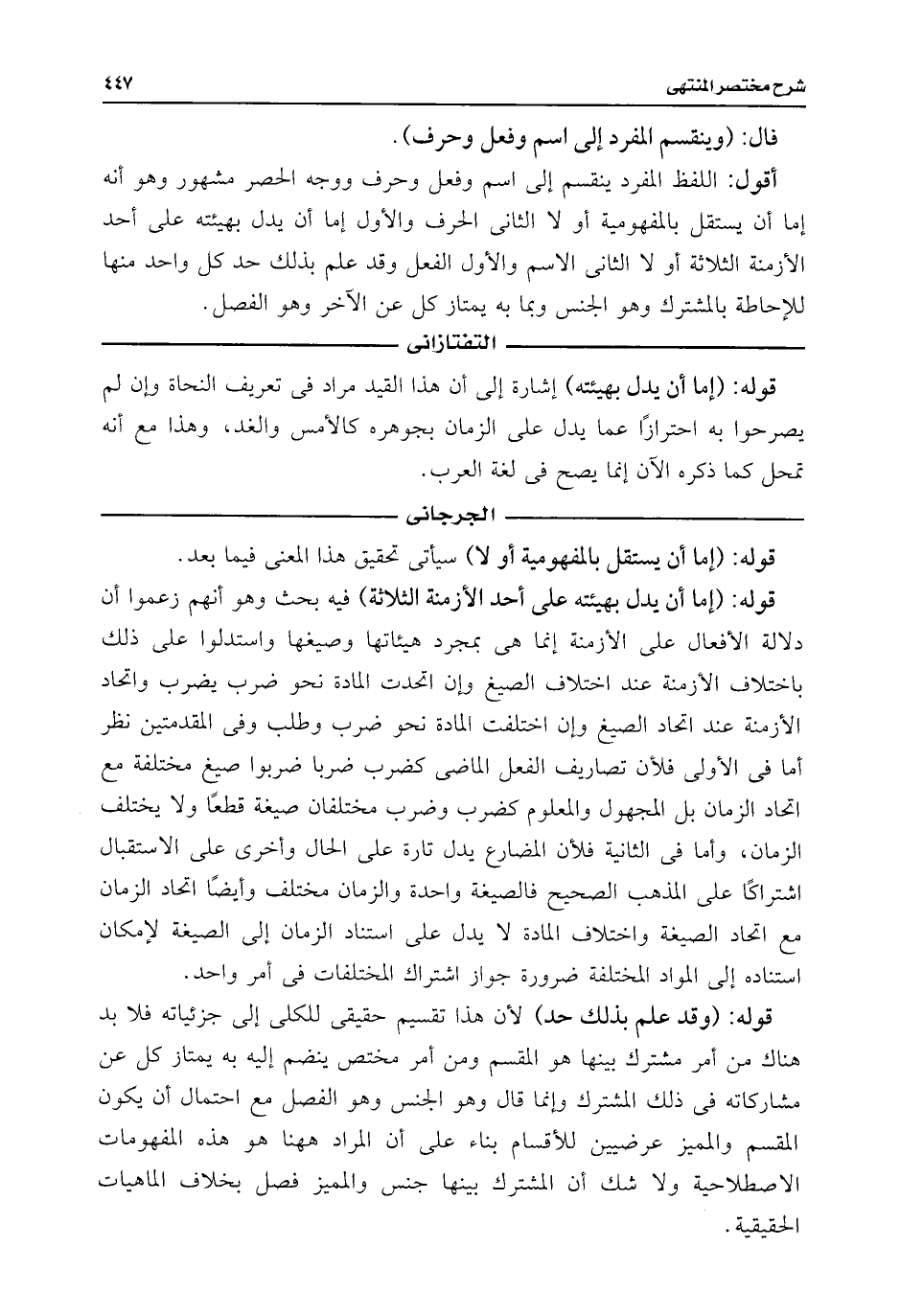 قال: (وينقسم المفرد إلى اسم وفعل وحرف).