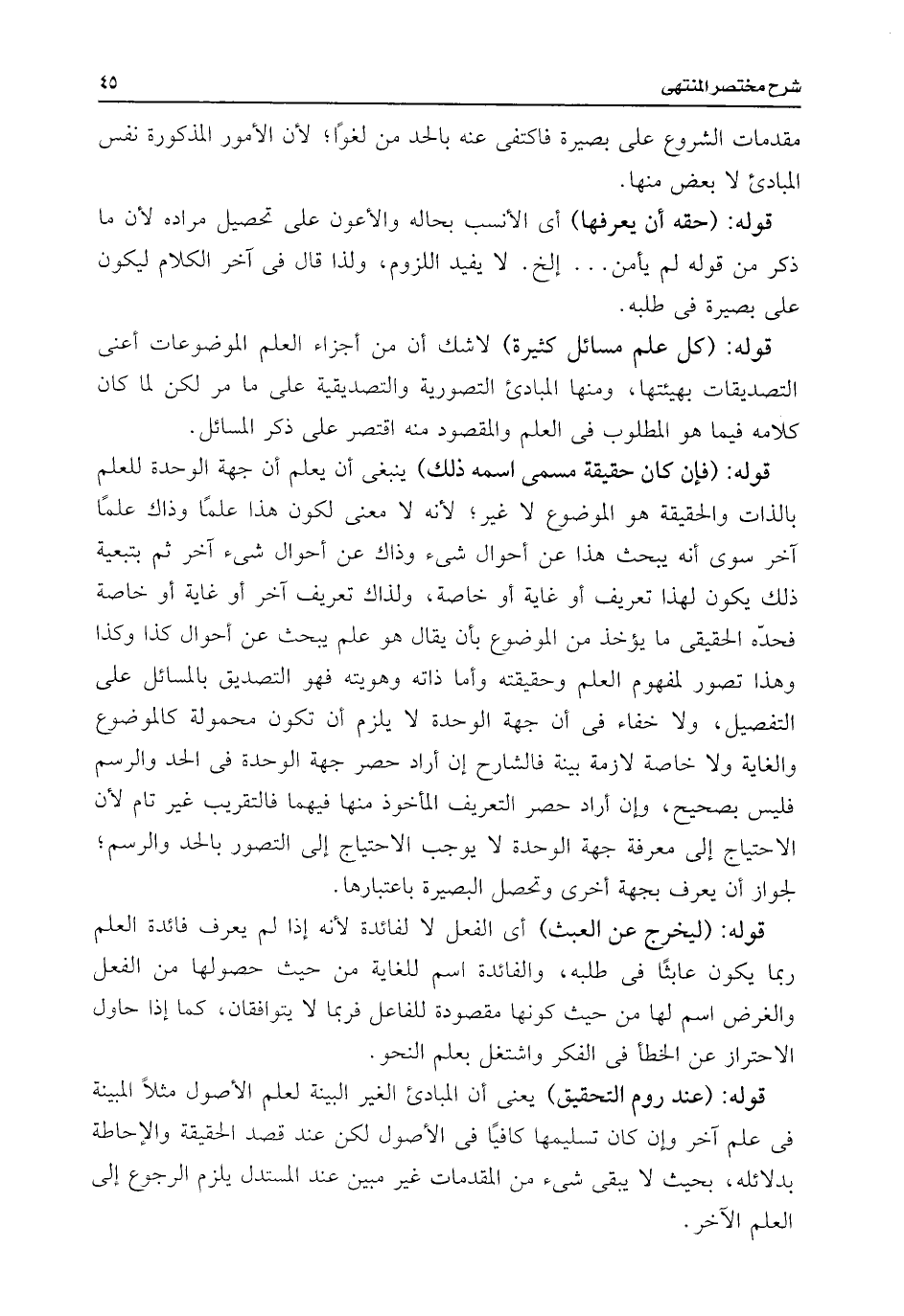 قوله: (حقه أن يعرفها) أى الأنسب بحاله والأعون على تحصيل مراده لأن ما ذكر من قوله لم يأمن. . . إلخ. لا يفيد اللزوم، ولذا قال فى آخر الكلام ليكون على بصيرة فى طلبه.