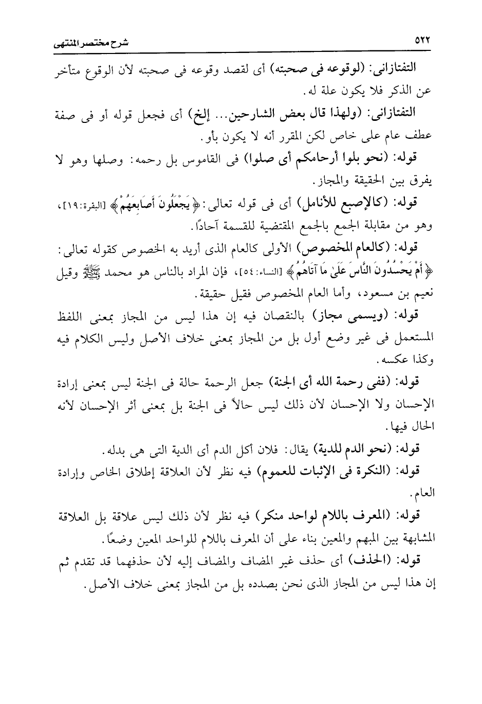 قوله: (النكرة فى الإثبات للعموم) فيه نظر لأن العلاقة إطلاق الخاص وإرادة العام.