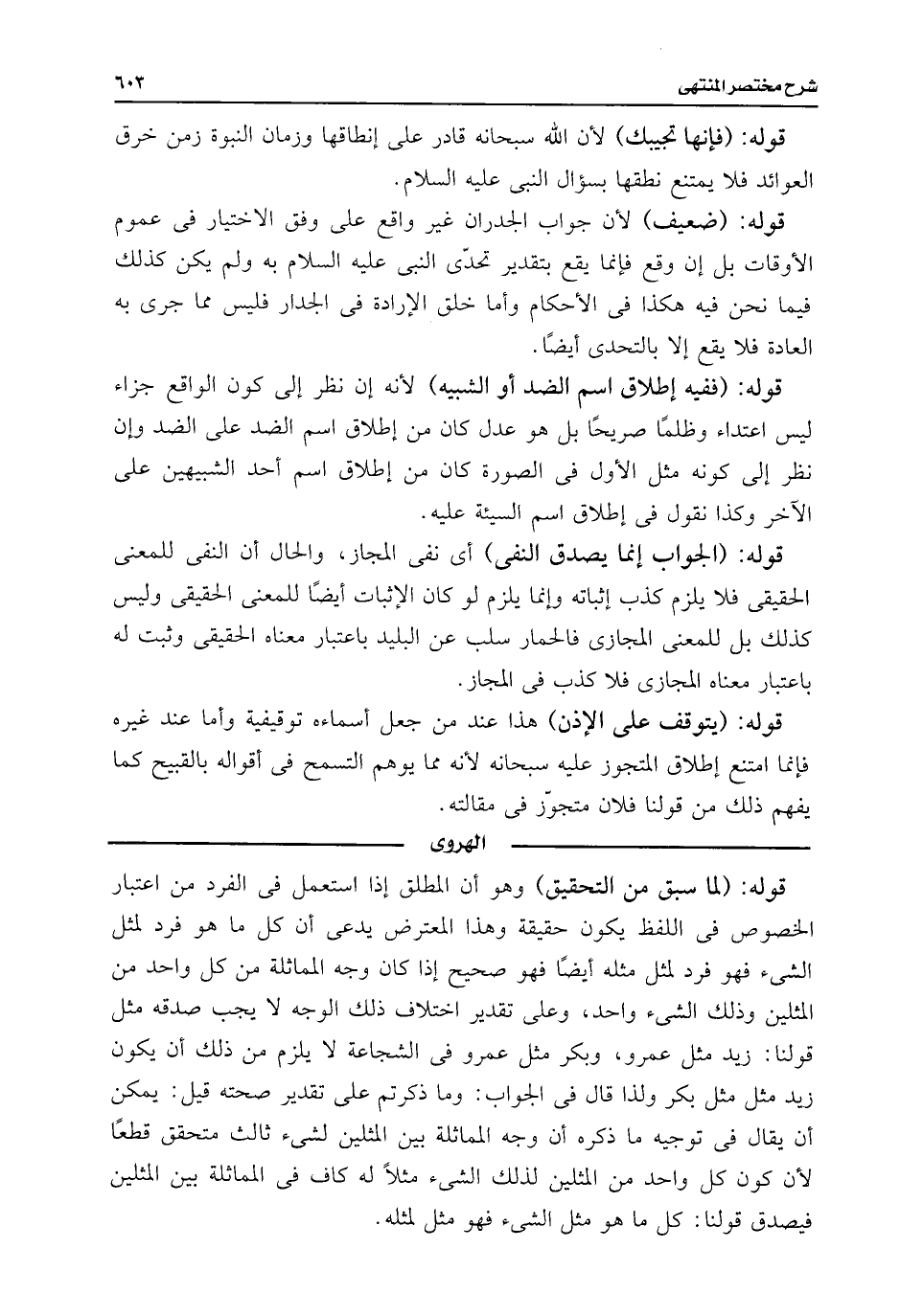 قوله: (ضعيف) لأن جواب الجدران غير واقع على وفق الاختيار فى عموم الأوقات بل إن وقع فإنما يقع بتقدير تحدّى النبى عليه السلام به ولم يكن كذلك فيما نحن فيه هكذا فى الأحكام وأما خلق الإرادة فى الجدار فليس مما جرى به العادة فلا يقع إلا بالتحدى أيضًا.