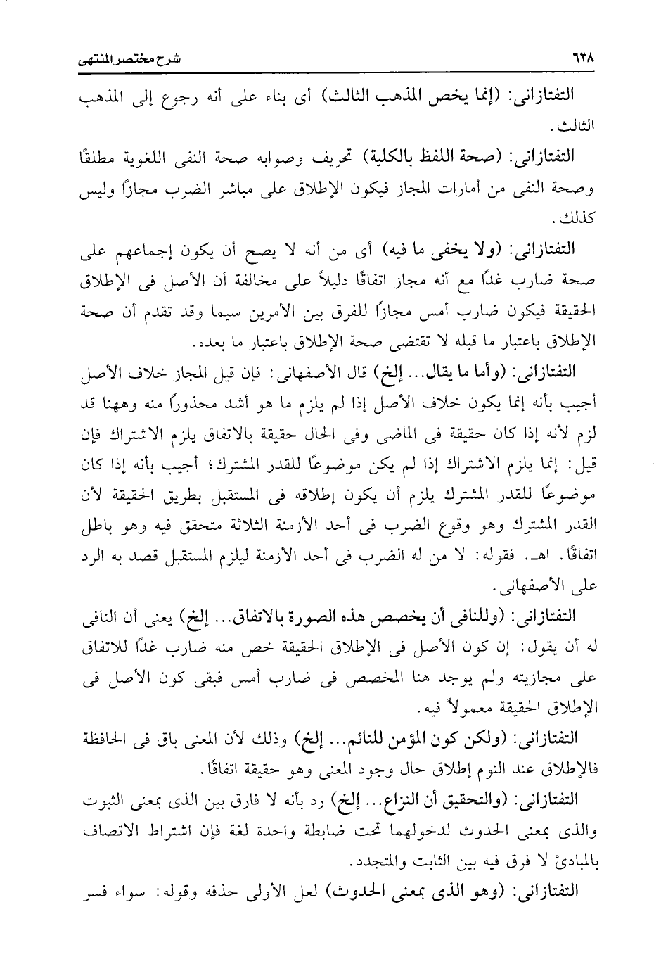 التفتازانى: (صحة اللفظ بالكلية) تحريف وصوابه صحة النفى اللغوية مطلقًا وصحة النفى من أمارات المجاز فيكون الإطلاق على مباشر الضرب مجازًا وليس كذلك.