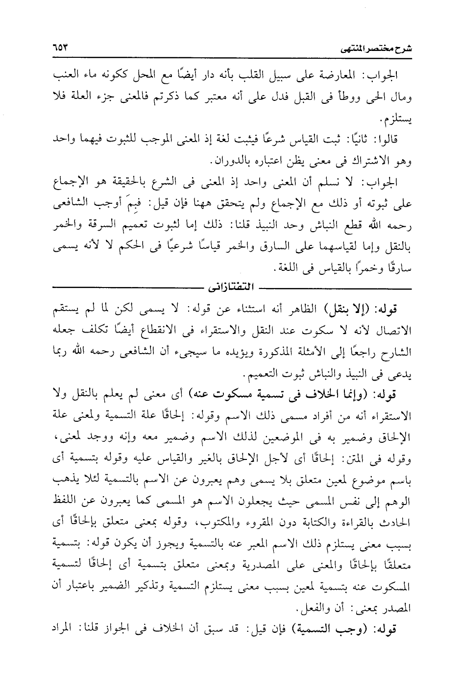قوله: (إلا بنقل) الظاهر أنه استثناء عن قوله: لا يسمى لكن لما لم يستقم الاتصال لأنه لا سكوت عند النقل والاستقراء فى الانقطاع أيضًا تكلف جعله الشارح راجعًا إلى الأمثلة المذكورة ويؤيده ما سيجئ أن الشافعى رحمه اللَّه ربما يدعى فى النبيذ والنباش ثبوت التعميم.