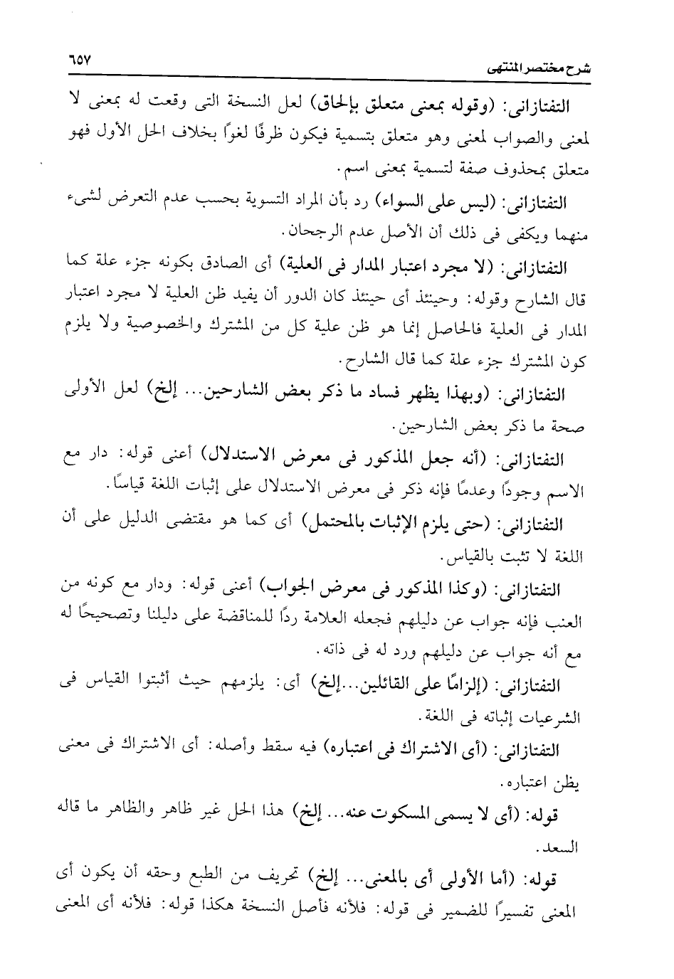 التفتازانى: (حتى يلزم الإثبات بالمحتمل) أى كما هو مقتضى الدليل على أن اللغة لا تثبت بالقياس.