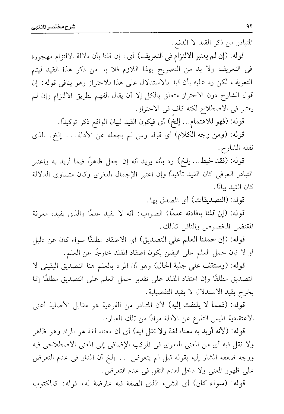 قوله: (إن لم يعتبر الالنزام فى التعريف) أى: إن قلنا بأن دلالة الالتزام مهجورة فى التعريف ولا بد من التصريح بهذا اللازم فلا بد من ذكر هذا القيد ليتم التعريف لكن رد عليه بأن قيد بالاستدلال على هذا للاحتراز وهو ينافى قوله: إن قول الشارح دون الاحتزاز متعلق بالكل إلا أن يقال الفهم بطريق الالتزام وإن لم يعتبر فى الاصطلاح لكنه كافٍ فى الاحتراز.
