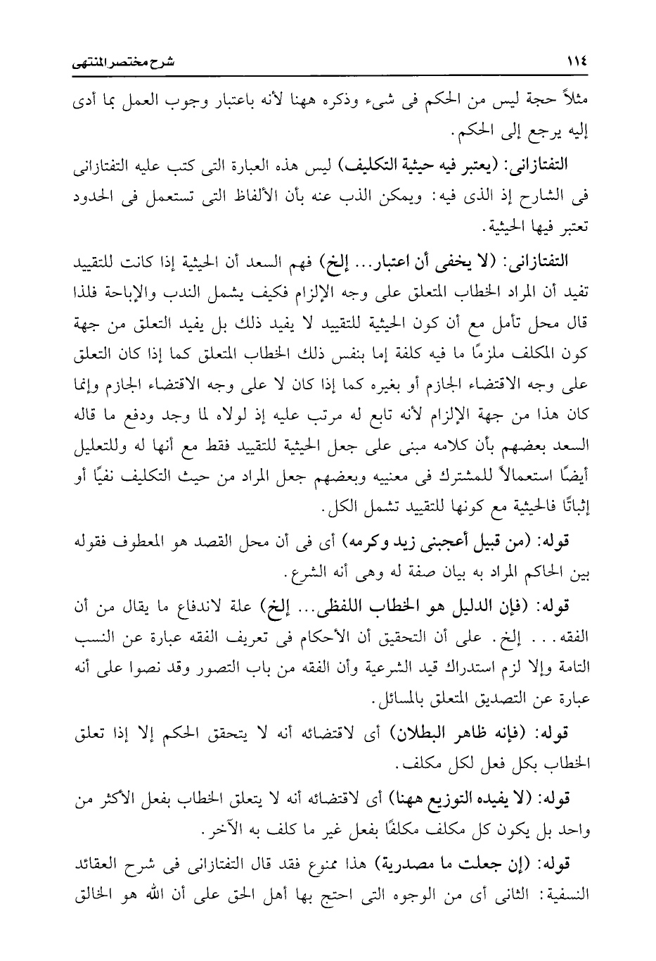 التفتازانى: (يعتبر فيه حيثية التكليف) ليس هذه العبارة التى كتب عليه التفتازانى فى الشارح إذ الذى فيه: ويمكن الذب عنه بأن الألفاظ التى تستعمل فى الحدود تعتبر فيها الحيثية.