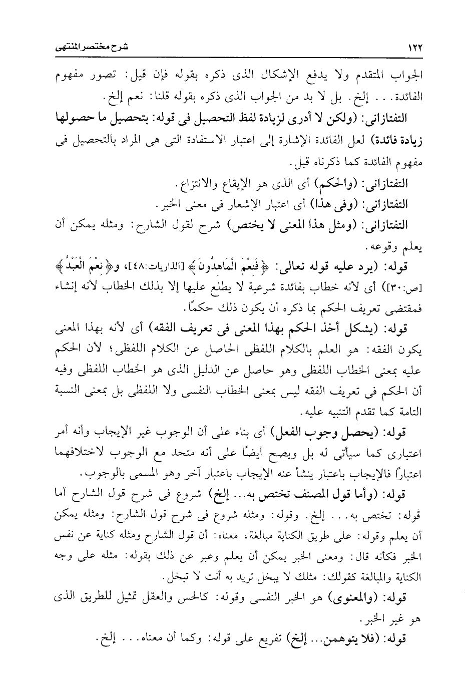 التفتازانى: (ولكن لا أدرى لزيادة لفظ التحصيل فى قوله: بتحصيل ما حصولها زيادة فائدة) لعل الفائدة الإشارة إلى اعتبار الاستفادة التى هى المراد بالتحصيل فى مفهوم الفائدة كما ذكرناه قبل.
