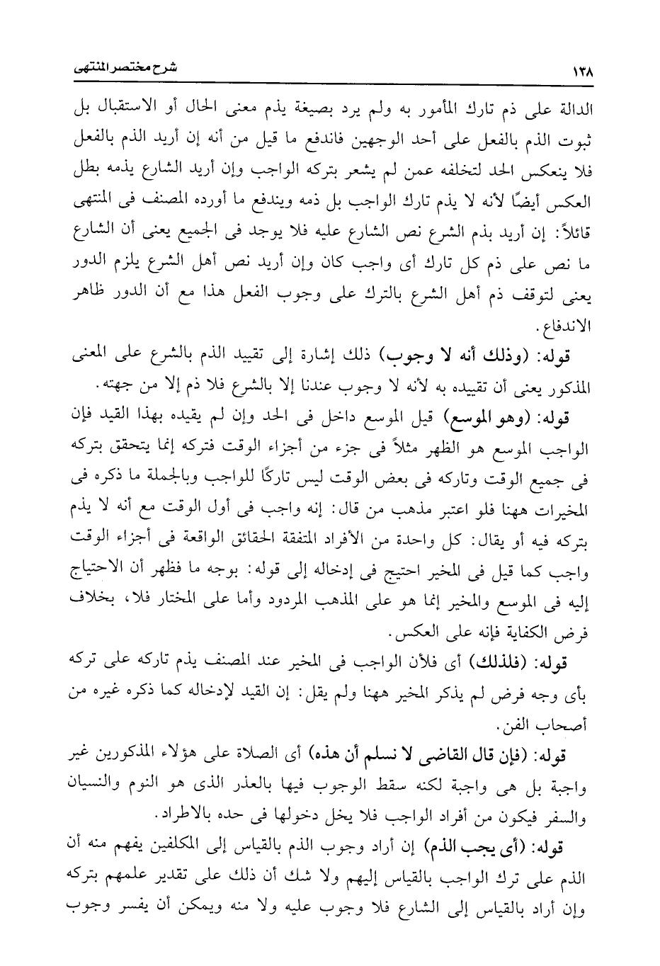 قوله: (أى يجب الذم) إن أراد وجوب الذم بالقياس إلى المكلفين يفهم منه أن الذم على ترك الواجب بالقياس إليهم ولا شك أن ذلك على تقدير علمهم بتركه وإن أراد بالقياس إلى الشارع فلا وجوب عليه ولا منه ويمكن أن يفسر وجوب
