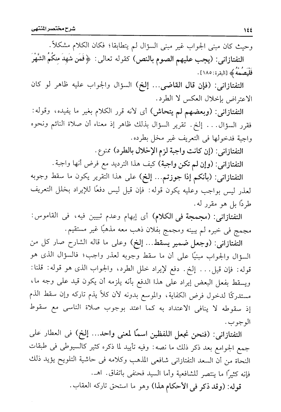 التفتازانى: (وبعضهم لم يتحاش) أى لأنه قرر الكلام بغير ما يفيده، وقوله: فقرر السؤال. . . إلخ. تقرير السؤال بذلك ظاهر إذ معناه أن صلاة النائم ونحوه واجبة فدخولها فى التعريف غير مخل بطرده.
