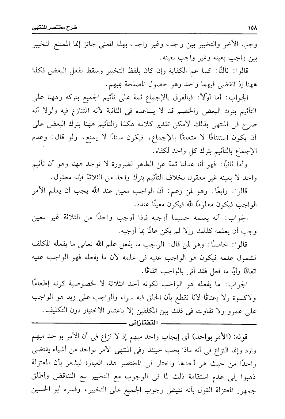 وأما ثانيًا: فهو أنا عدلنا ثمة عن الظاهر لضرورة لا توجد ههنا وهو أن تأثيم واحد لا بعينه غير معقول بخلاف التأثيم بترك واحد من الثلاثة فإنه معقول.