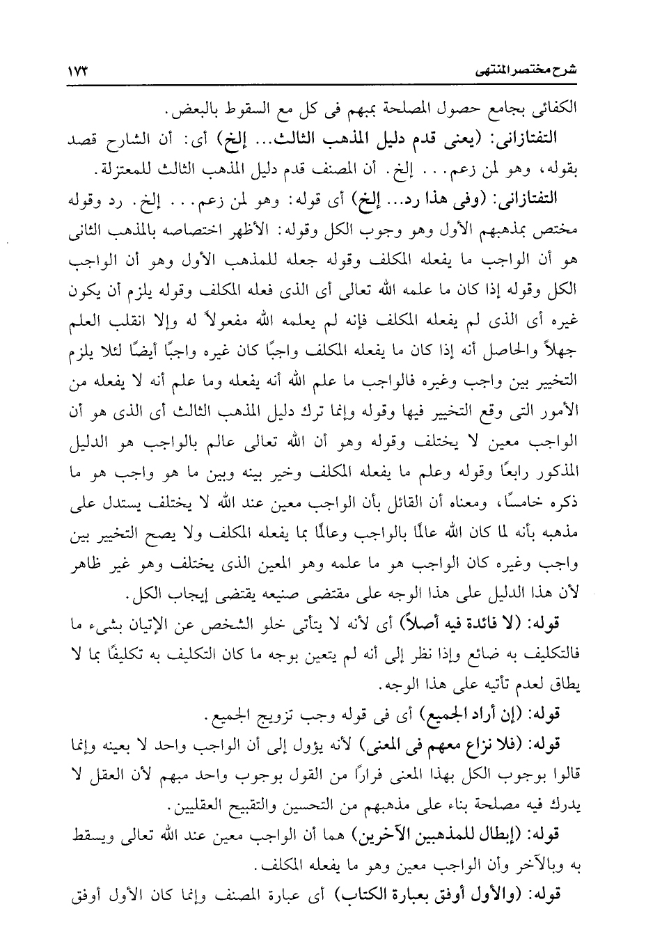 التفتازانى: (وفى هذا رد. . . إلخ) أى قوله: وهو لمن زعم. . . إلخ. رد وقوله مختص بمذهبهم الأول وهو وجوب الكل وقوله: الأظهر اختصاصه بالمذهب الثانى هو أن الواجب ما يفعله المكلف وقوله جعله للمذهب الأول وهو أن الواجب الكل وقوله إذا كان ما علمه اللَّه تعالى أى الذى فعله المكلف وقوله يلزم أن يكون غيره أى الذى لم يفعله المكلف فإنه لم يعلمه اللَّه مفعولًا له وإلا انقلب العلم جهلًا والحاصل أنه إذا كان ما يفعله المكلف واجبًا كان غيره واجبًا أيضًا لئلا يلزم التخيير بين واجب وغيره فالواجب ما علم اللَّه أنه يفعله وما علم أنه لا يفعله من الأمور التى وقع التخيير فيها وقوله وإنما ترك دليل المذهب الثالث أى الذى هو أن الواجب معين لا يختلف وقوله وهو أن اللَّه تعالى عالم بالواجب هو الدليل المذكور رابعًا وقوله وعلم ما يفعله المكلف وخير بينه وبين ما هو واجب هو ما ذكره خامسًا، ومعناه أن القائل بأن الواجب معين عند اللَّه لا يختلف يستدل على مذهبه بأنه لما كان اللَّه عالمًا بالواجب وعالمًا بما يفعله المكلف ولا يصح التخيير بين واجب وغيره كان الواجب هو ما علمه وهو المعين الذى يختلف وهو غير ظاهر لأن هذا الدليل على هذا الوجه على مقتضى صنيعه يقضى إيجاب الكل.