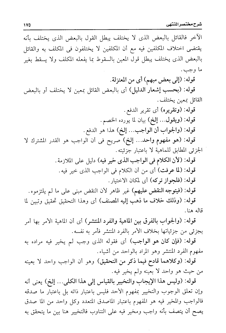الآخر فالقائل بالبعض الذى لا يختلف يبطل القول بالبعض الذى يختلف بأنه يقتضى اختلاف المكلفين فيه مع أن المكلفين لا يختلفون فى المكلف به والقائل بالبعض الذى يختلف يبطل قول المعين بالسقوط بما يفعله المكلف ولا يسقط بغير ما وجب.