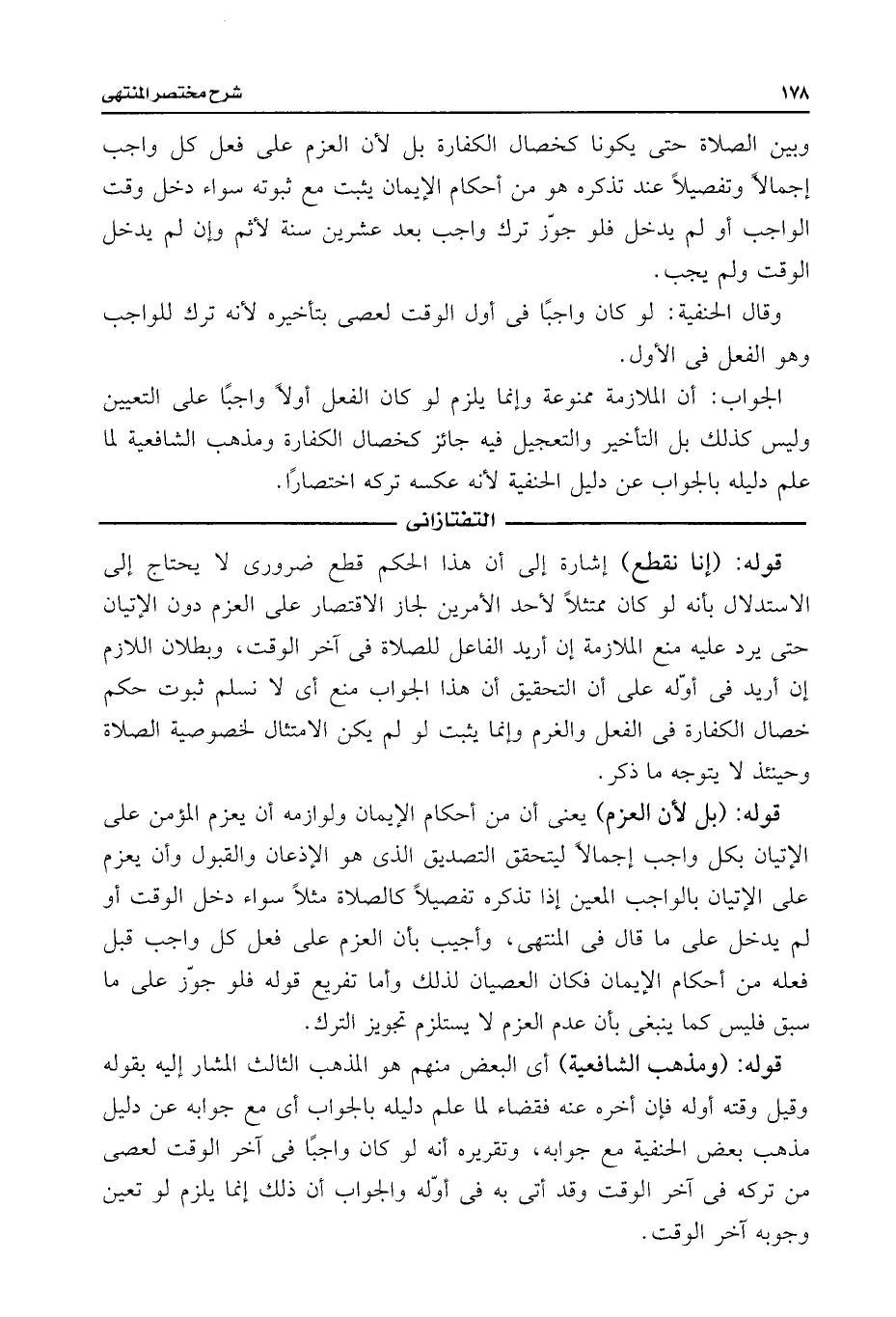 الجواب: أن الملازمة ممنوعة وإنما يلزم لو كان الفعل أولًا واجبًا على التعيين وليس كذلك بل التأخير والتعجيل فيه جائز كخصال الكفارة ومذهب الشافعية لما علم دليله بالجواب عن دليل الحنفية لأنه عكسه تركه اختصارًا.