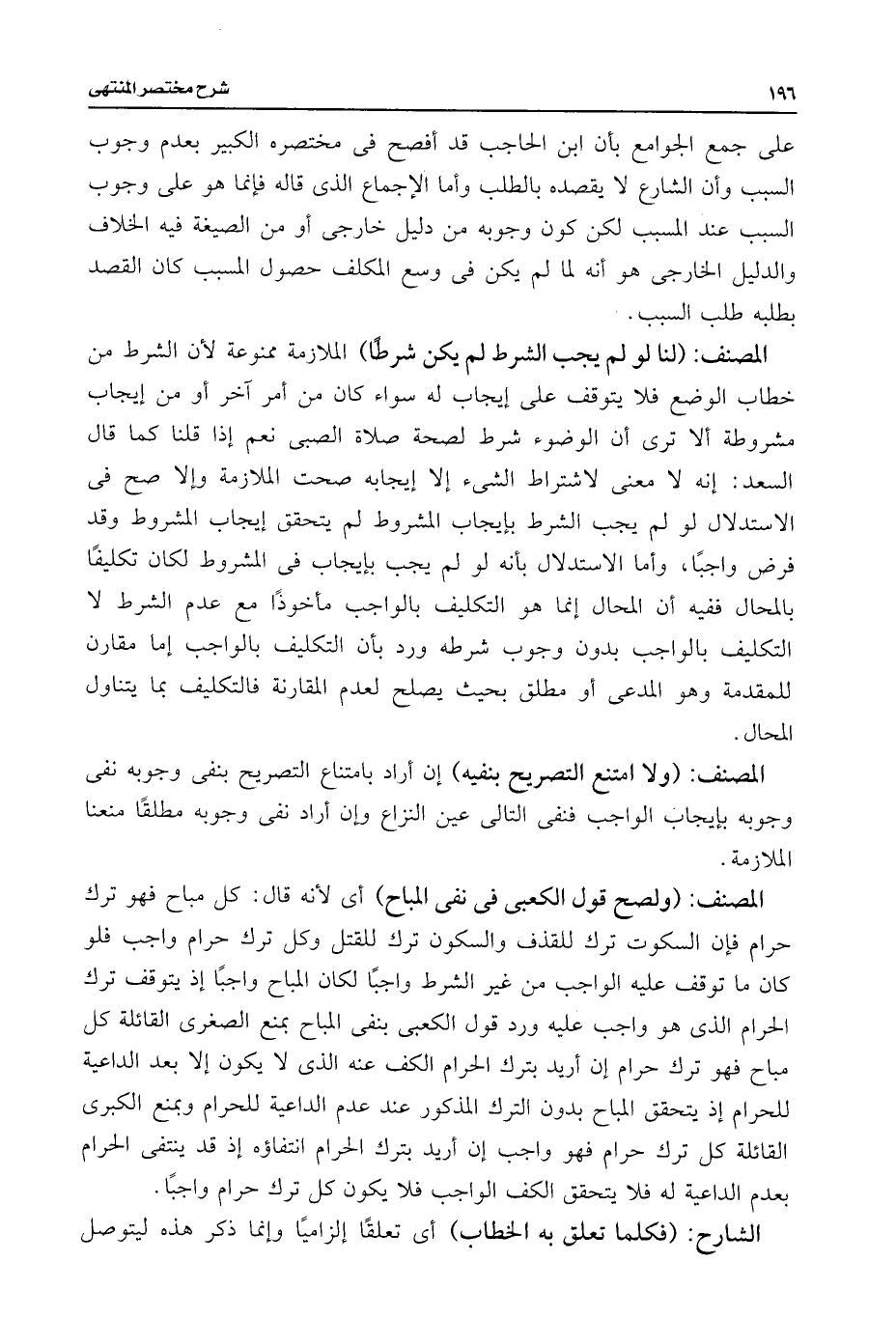 المصنف: (ولا امتنع التصريح بنفيه) إن أراد بامتناع التصريح بنفى وجوبه نفى وجوبه بإيجاب الواجب فنفى التالى عين النزاع وإن أراد نفى وجوبه مطلقًا منعنا الملازمة.
