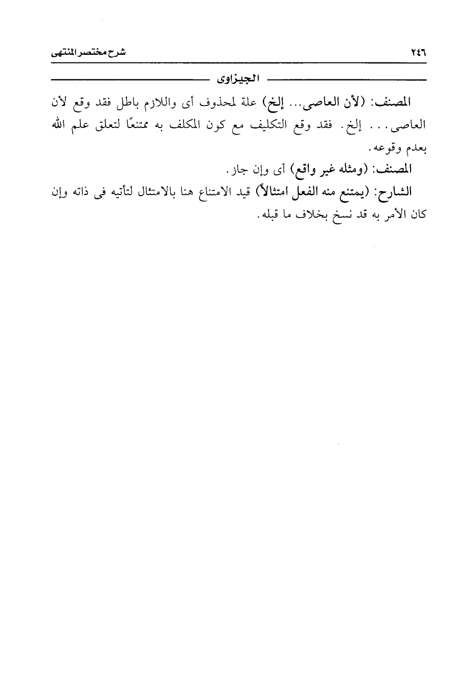 الشارح: (يمتنع منه الفعل امتثالًا) قيد الامتناع هنا بالامتثال لتأتيه فى ذاته وإن كان الأمر به قد نسخ بخلاف ما قبله.
