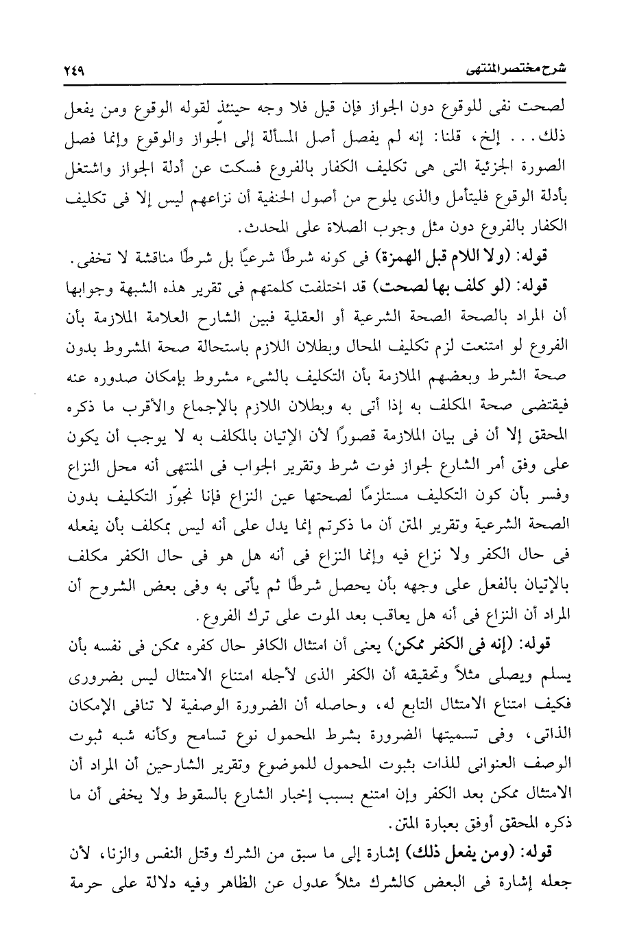 لصحت نفى للوقوع دون الجواز فإن قيل فلا وجه حينئذٍ لقوله الوقوع ومن يفعل ذلك. . . إلخ، قلنا: إنه لم يفصل أصل المسألة إلى الجواز والوقوع وإنما فصل الصورة الجزئية التى هى تكليف الكفار بالفروع فسكت عن أدلة الجواز واشتغل بأدلة الوقوع فليتأمل والذى يلوح من أصول الحنفية أن نزاعهم ليس إلا فى تكليف الكفار بالفروع دون مثل وجوب الصلاة على المحدث.
