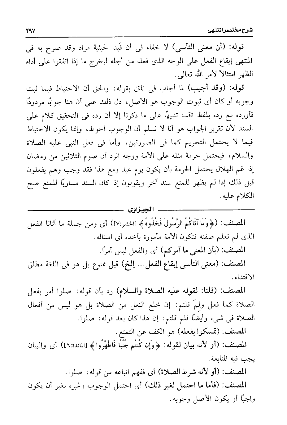 قوله: (أن معنى التأسى) لا خفاء فى أن قَيد الحيثية مراد وقد صرح به فى المنتهى إيقاع الفعل على الوجه الذى فعله من أجله ليخرج ما إذا اتفقوا على أداء الظهر امتثالًا لأمر اللَّه تعالى.