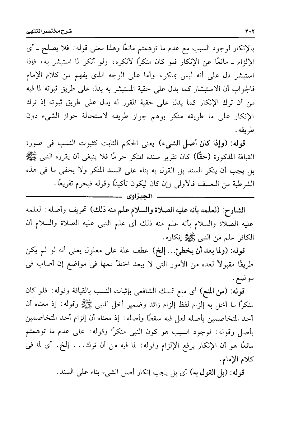 قوله: (من المنع) أى منع تمسك الشافعى بإثبات النسب بالقيافة وقوله: فلو كان منكرًا ما أخل به إلزام لفظ إلزام زائد وضمير أخل للنبى -صلى اللَّه عليه وسلم- وقوله: إذ معناه أن أحد المتخاصمين بأصله لعل فيه سقطًا وأصله: إذ معناه أن إلزام أحد المتخاصمين بأصل وقوله: لوجود السبب هو كون النبى منكرًا وقوله: على عدم ما توهمتم مانعًا هو أن الإنكار يرفع الإلزام وقوله: لما فيه من أن ترك. . . إلخ. أى لما فى كلام الإمام.